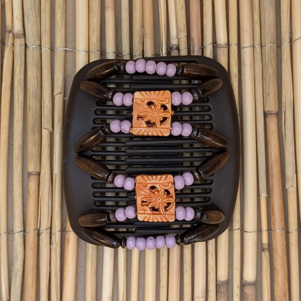 African Butterfly "Dupla" mit braun-flieder Holzperlen braun