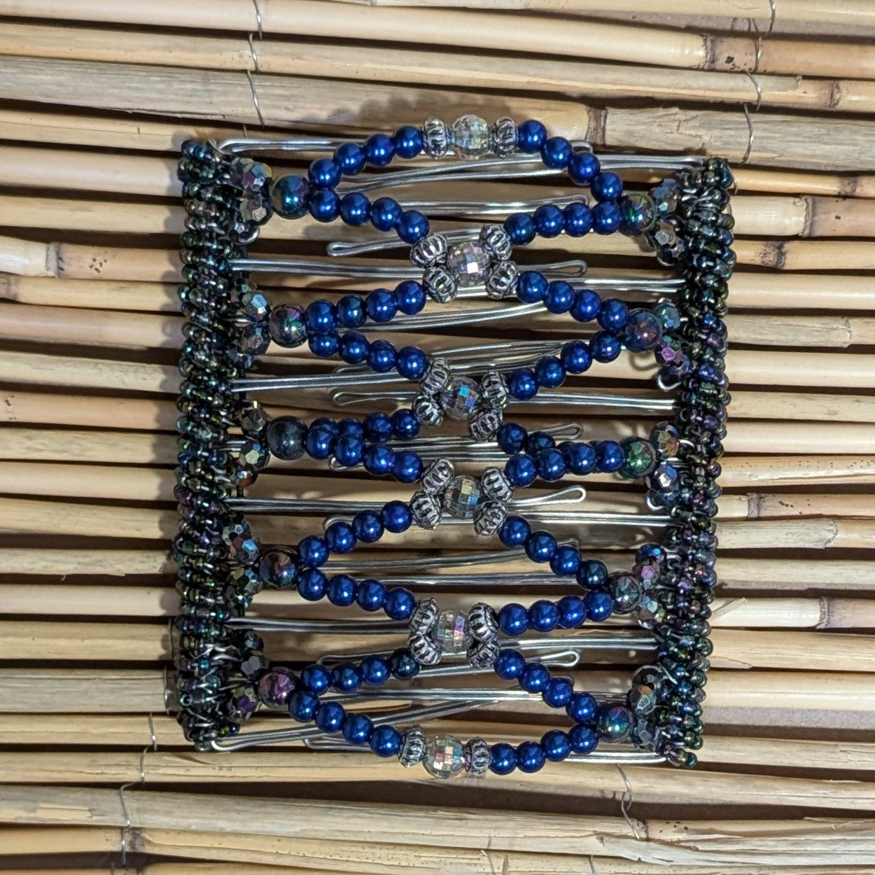 Rhino "Ndalena" extragroß mit blauen-silbernen Kunstperlen mit 11 Zähnen