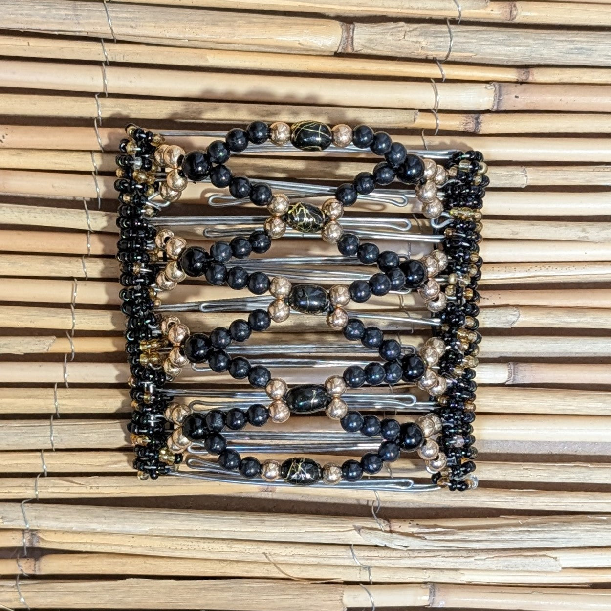 Rhino "Ndalena" groß mit gold-schwarzen Kunstperlen mit 9 Zähnen