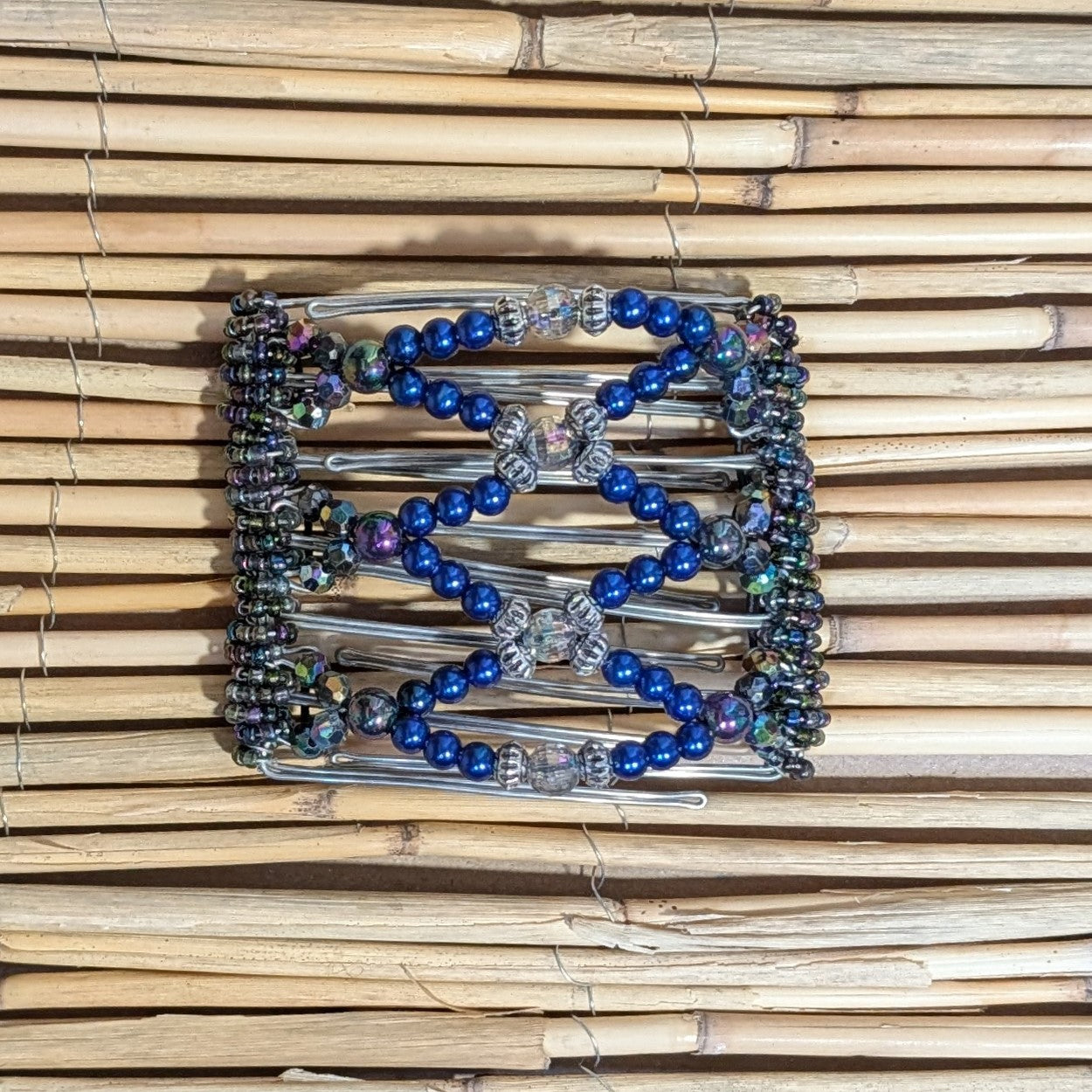 Rhino "Ndalena" mittel mit blauen Kunstperlen mit 7 Zähnen