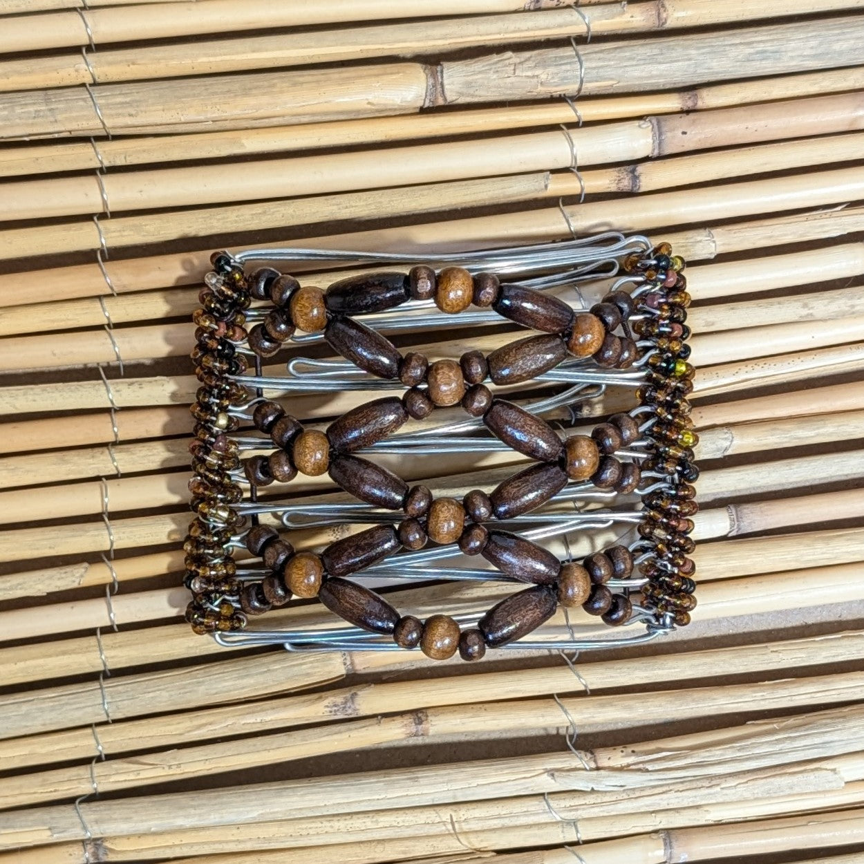 Rhino "Ndbele" mittel mit braunen Holzperlen mit 7 Zähnen