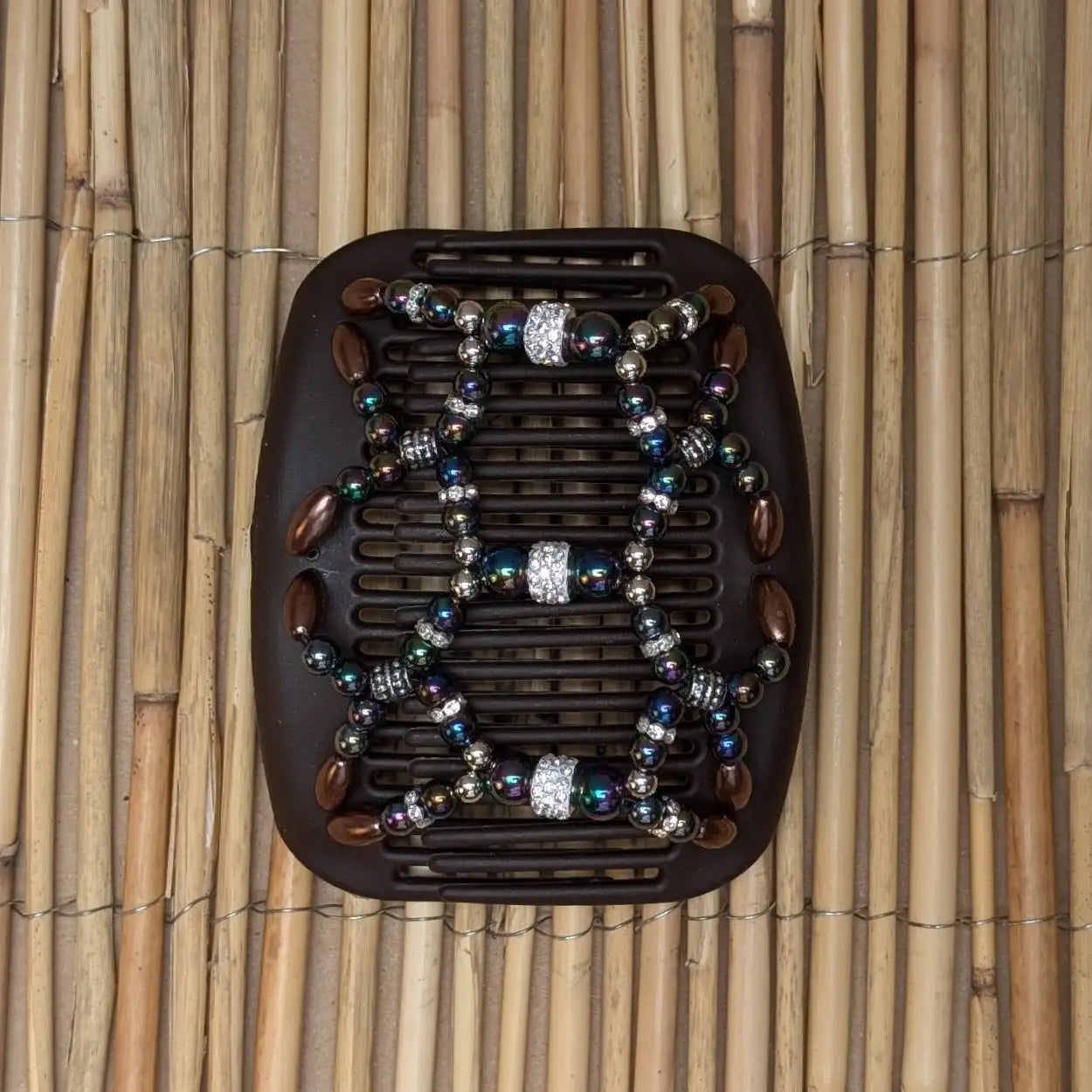 African Butterfly Strass "Ndalena" mit regenbogen Kunstperlen braun
