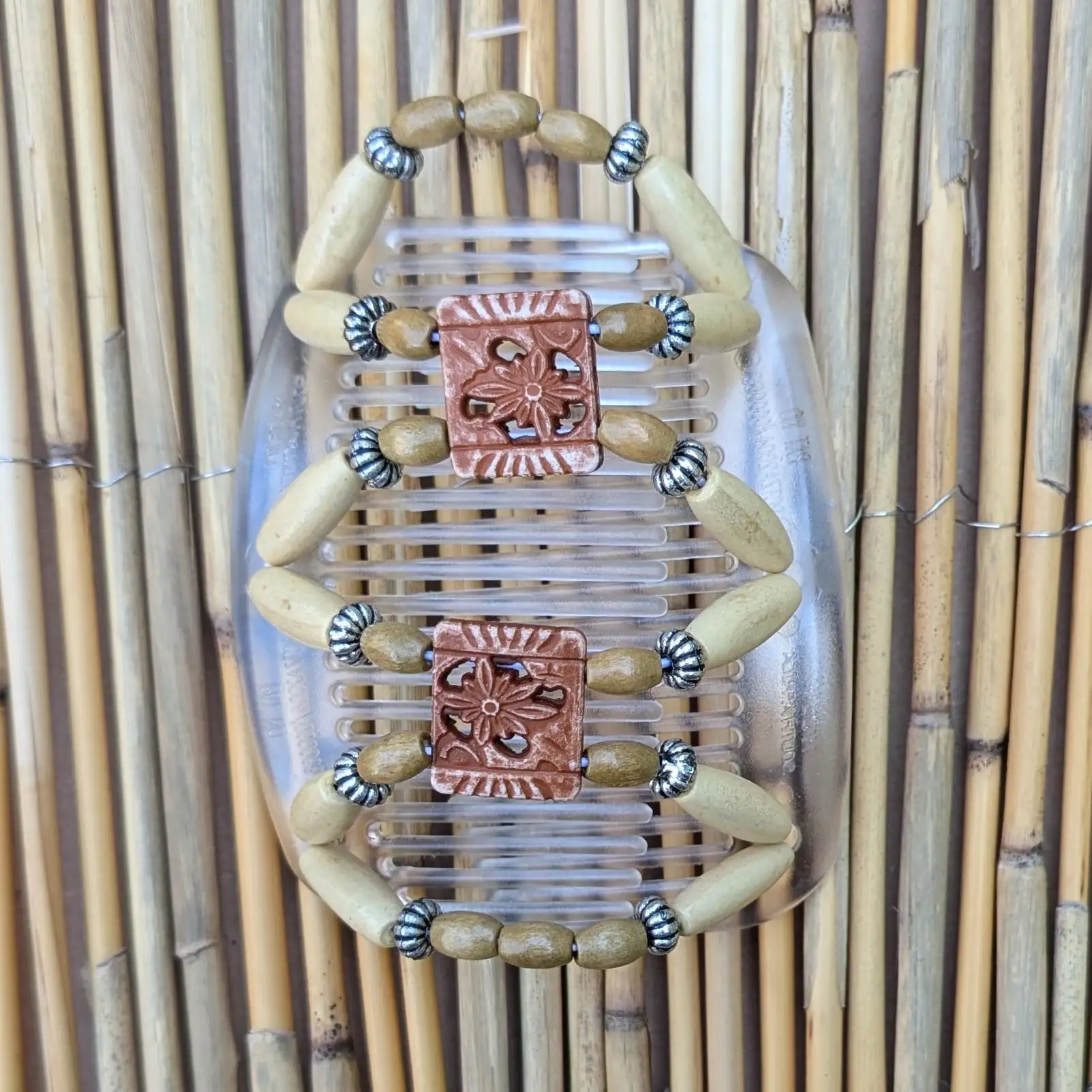 African Butterfly "Dupla" mit hellbraunen Holzperlen durchsichtig