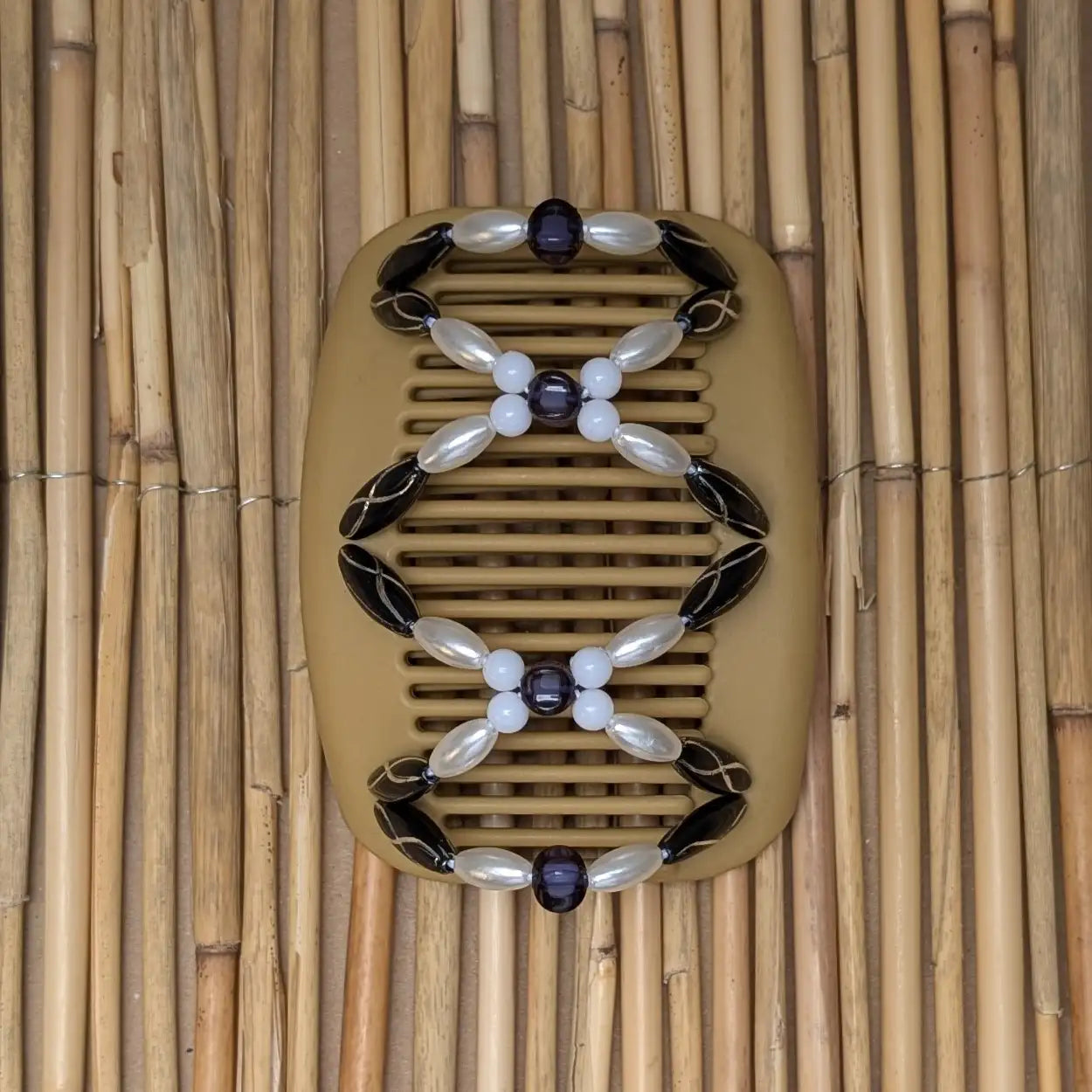 African Butterfly "Dalena" mit schwarz weißen Kunstperlen beige