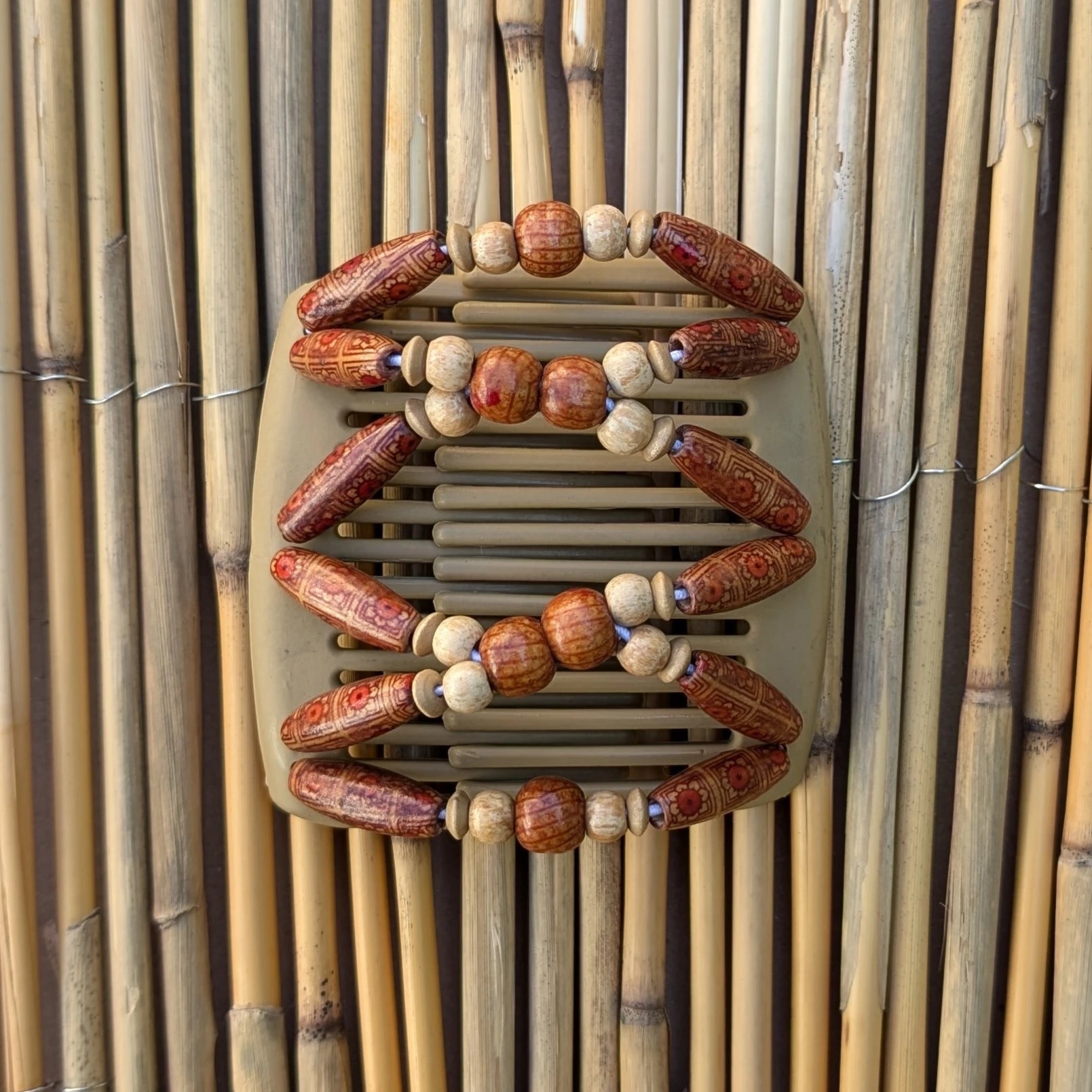 Chameleon "Beada" mit rötlichen-hellen Holzperlen beige