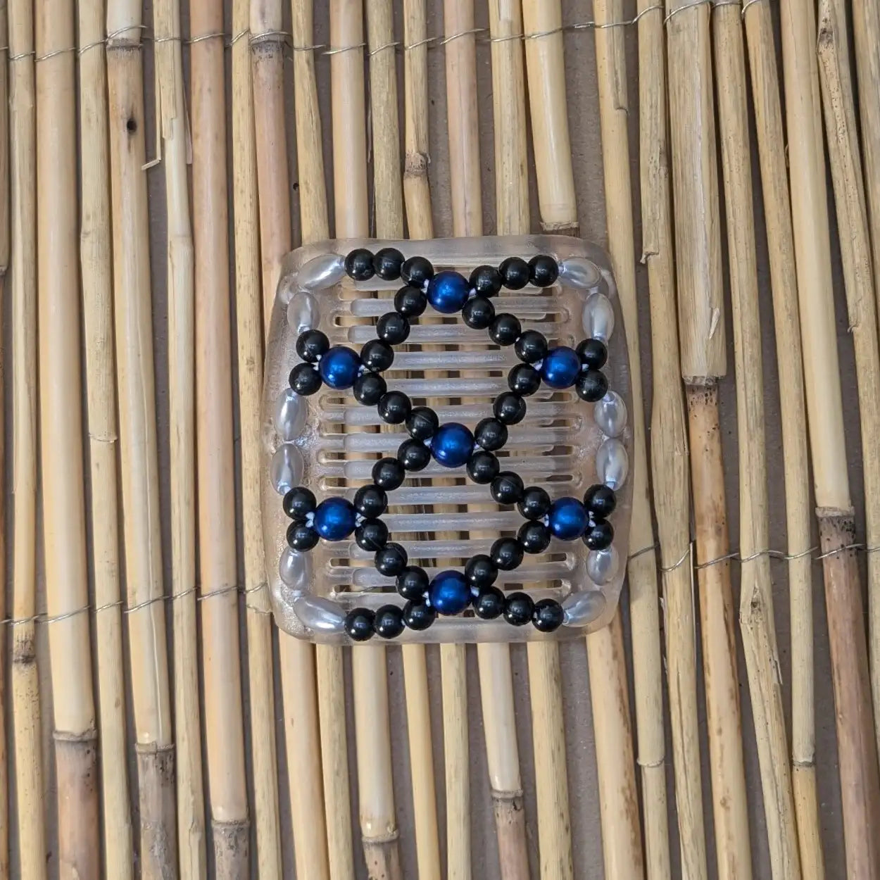 Chameleon "Ndalena" mit schwarz-blauen Kunstperlen durchsichtig