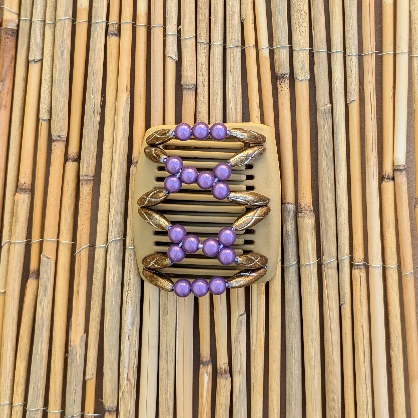 Chameleon "Dalena" mit bronzen-lila Kunstperlen beige