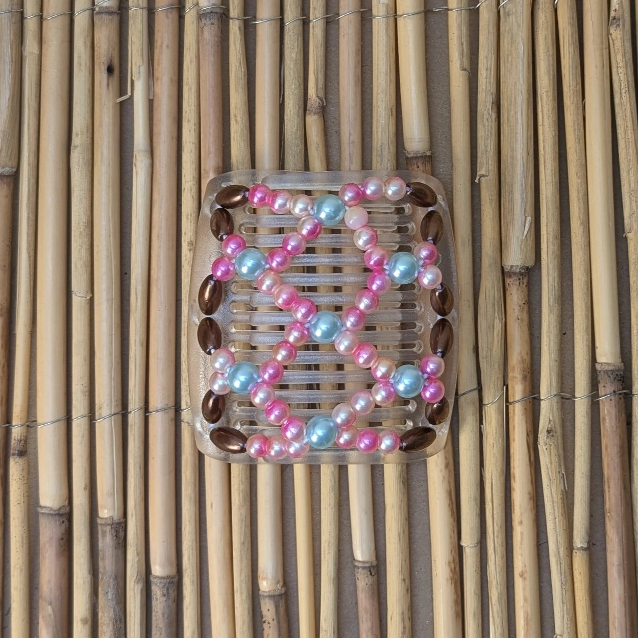 Chameleon "Ndalena" mit rosa-blauen Kunstperlen durchsichtig
