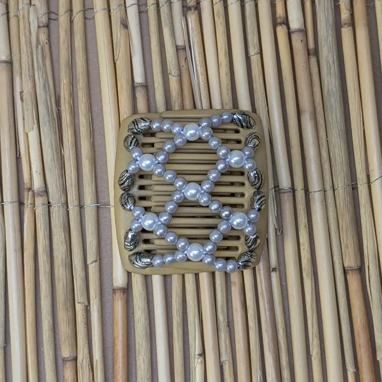 Chameleon "Ndalena" mit silber-hellgrauen Kunstperlen beige