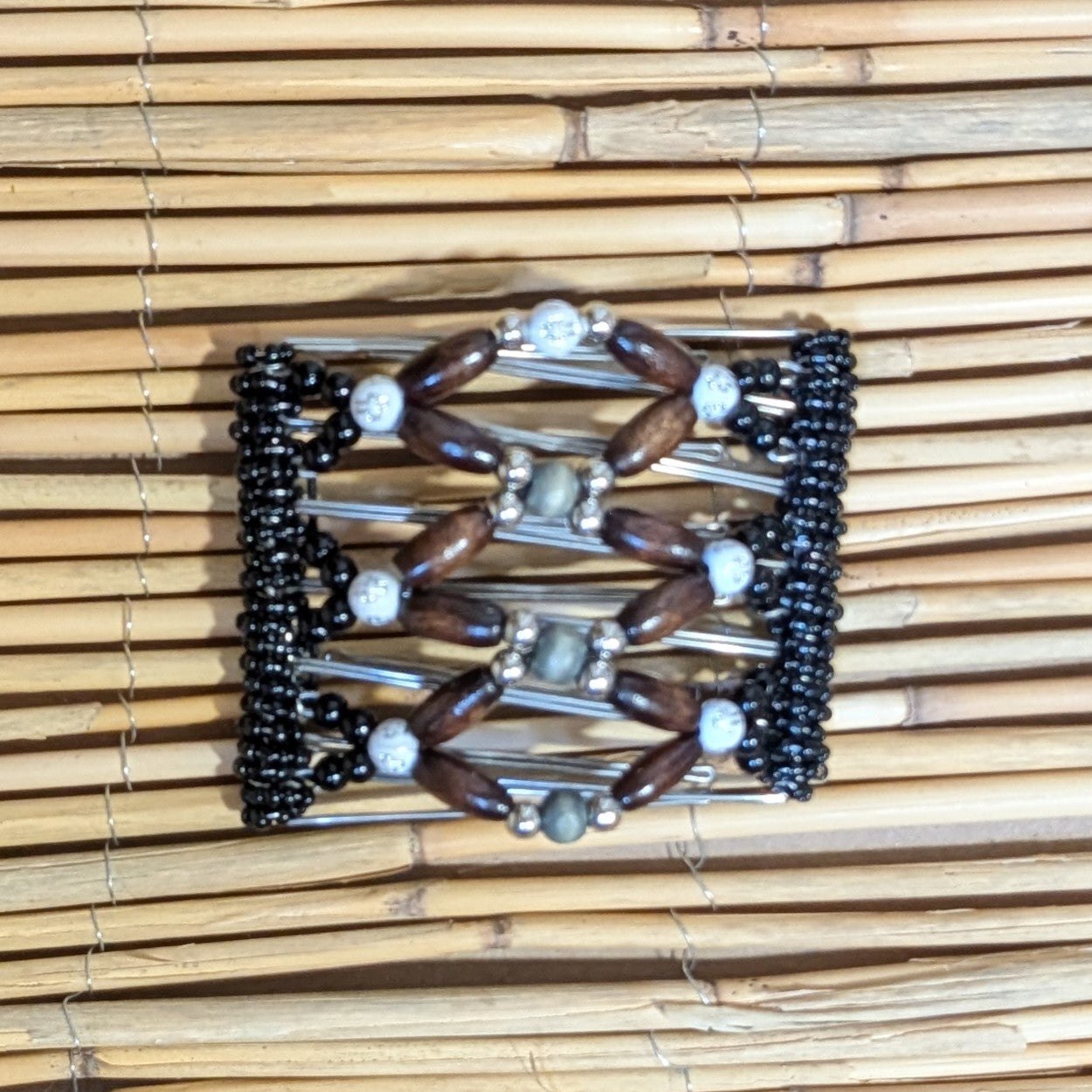 Rhino "Ndbele" mittel mit schwarz-braunen Holzperlen mit 7 Zähnen