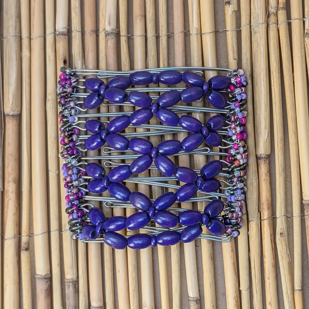 Rhino "Ndbele" groß mit lila Holzperlen mit 9 Zähnen