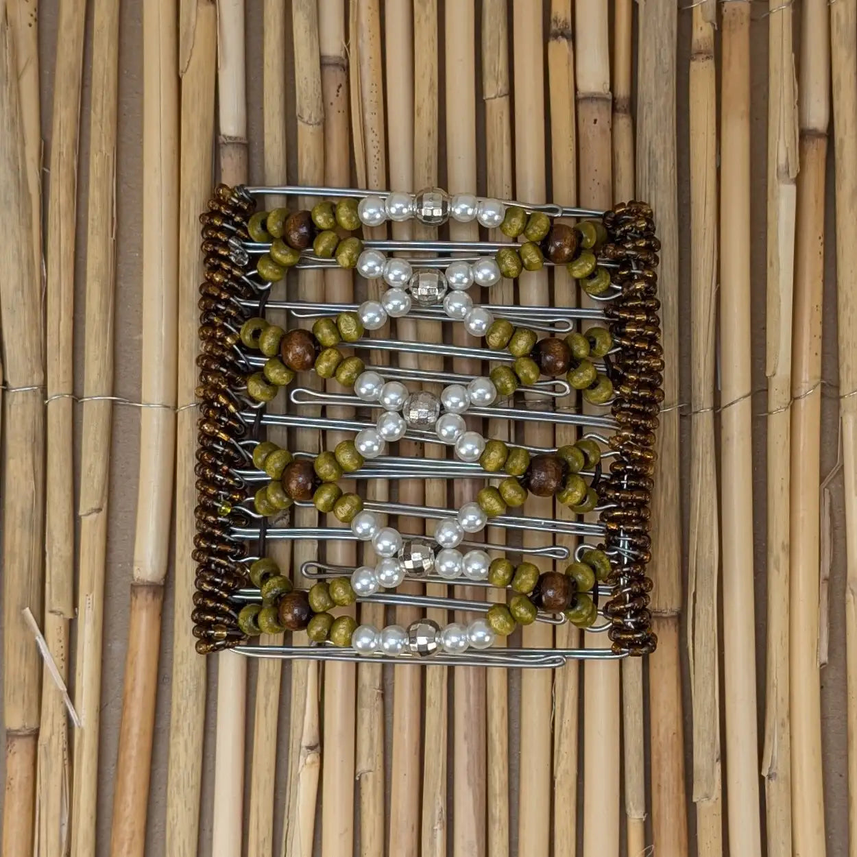 Rhino "Ndbele" Mittel mit grün-braun-weißen Holzperlen